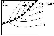 A.乙地的风速比甲地大 B.乙地晴朗甲地阴雨