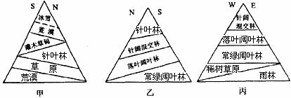读“甲、乙、丙三地垂直自然带分布图,甲、乙两地均位于我国,丙地位于某岛屿,据此回答19-21题。