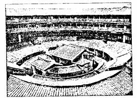 2008年7月6日,中国“福建土楼”在加拿大魁北克城举行的第32届世界遗产大会上被正式列入《世界遗产名录》。下面是福建永定县振成楼案观图,读图回答12-15题。