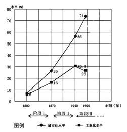 A.城市化与工业化呈同步增长趋势 B.阶段Ⅰ城市化进程速度比阶段Ⅱ快