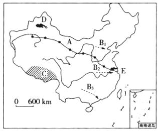 (2)A线路起点是 ,终点是 ,A工程对于长江三角洲地区有哪些积极意义?(4分)