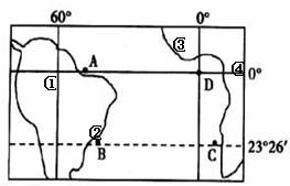 读下图,某海轮于6月22日由A点出发,经B、C、D三处,当年8月1日返回原地。回答1--2题。