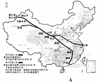 37.材料一 2008年初,世界最长的跨国天然气管道西气东输二线工程正式开工。该工程外连土库曼斯坦的中亚天然气管道,西起我国霍尔果斯,南至广州、深圳和香港,是世界上最长的跨国天然气管道,将国内外天然气输送到珠江三角洲、长江三角洲,为我国东部地区提供清洁能源,意义重大,影响深远。![]()