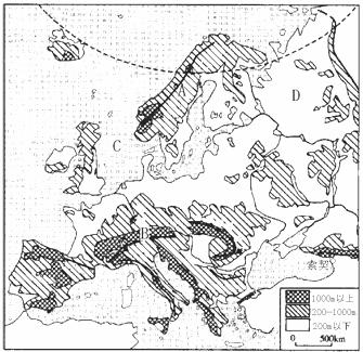 (4)图中D所在国家东部自南向北有注入北冰洋的三条大河,试分析这三条河流下游农业不发达的自然原因。(6分)