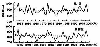 C.非林区的降水呈减少趋势 D.全国降水有增加的趋势