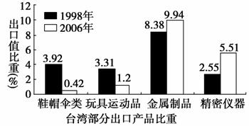 读我国台湾省部分出口产品比重示意图,回答16-17题。
