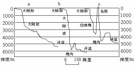 读世界某三地“大陆边缘向洋盆过渡示意图”, 回答第20-21题。