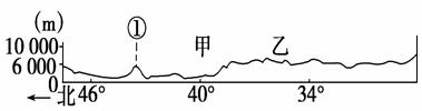 读我国沿90°E附近的地形剖面图,①为天山,回答22-23题。