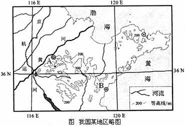 (1)分析A地寒潮发生的年平均次数多于B地的主要原因。(4分)