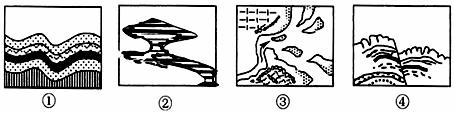 14.下图所示的地质构造或地貌景观中,主要由内力作用形成的是