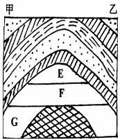 16.该地区为大型背斜构造的判定依据是在地表由甲至乙一线多点采集岩石标本,经同位素方法测定,岩石年龄分布为: