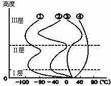 18.图中正确表示大气层气温垂直变化的曲线是: