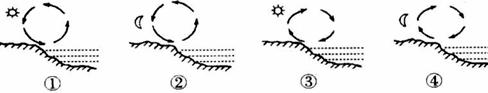 23.下图中,能够正确表示近地面陆地与海洋之间昼夜大气运动的图形是: