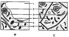 (8分)甲、乙两图是红枫叶肉细胞和根尖生长点细胞的亚显微结构示意图。请回答下列问题。