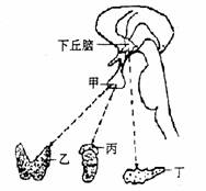37.(9分)右图是人的神经系统和内分泌系统的部分结构示意图,甲、乙、丙、丁分别表示四种腺体,请分析回答: