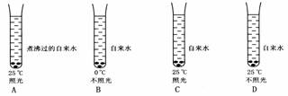 1.生长旺盛的叶片,剪成5毫米见方的小块,抽去叶内气体,做下列处理(见图及图注),这四个处理中,沉入底部的叶片小块最先浮起的是( )