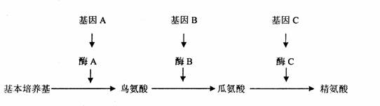 (二)精氨酸是红色面包霉进行正常生命活动所必须的氨基酸,而面包霉体内有相应的酶可以控制精氨酸的合成,其合成过程如下图所示: