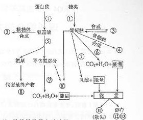 右图示意的是人体内物质代谢与能量代谢的关系(部分)。