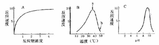 47.(6分)下列A、B、C三图依次表示酶浓度一定时,反应速度和反应物浓度、温度、pH值的关系。请据图回答下列问题: