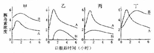 (2)下列甲-丁4种曲线图中能正确反映二人血液中胰岛素浓度变化的是_______。
