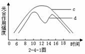 2-4-1图表示夏季白天C3植物和C4植物叶片光合作用强度的曲线。下列说法错误的是( )