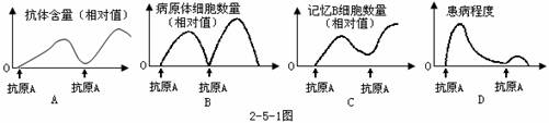 5.人体免疫反应是机体识别“自己”、排除“异己”的过程,在这一过程中发生了一系列的变化。下列2-5-1图中有关曲线,不能正确反映这一变化过程中某些因素变化情况的是( )