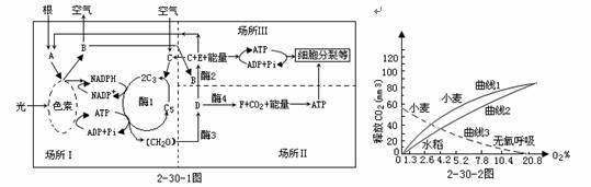 ③2-30-2图所示小麦和水稻幼苗呼吸作用的不同情况,其中曲线1说明: