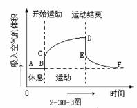 (2)人体通过呼吸运动吸进和呼出气体的数量受到神经和体液的调节,2-30-3图为某人在进行运动前后所吸进的空气体积的变化。请据图回答: