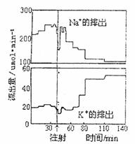 27.将狗的双侧肾上腺切除,当其出现症状后注射某种激素,接着测定随尿液排出的Na+、K+量,结果如右图。注射的激素是