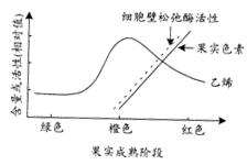 40.番茄果实成熟过程中,乙烯释放量、果实色素积累及细胞壁松弛酶活性变化规律如下