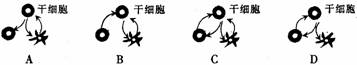 高等动物随着胚胎发育,仅有少数细胞依然具有分化成其他细胞类型和构建组织器官的能力,这类细胞称为干细胞,如造血干细胞。下图中最能完整显示正常机体内干细胞基本特征的是