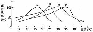 24.有人测定了A、B、C、D四种植物体内多种酶的活性与温度的关系,结果如下图所示,根据图中所示的信息,你认为在25℃条件下竞争能力最强的生物和对温度适应范围最广的生物分别是