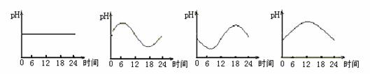 41.能正确反映野外绿色植物叶肉细胞内一昼夜酸碱度大致变化的曲线是 ( )