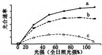 2.一位研究人员将三种不同的植物放到10种不同的光照强度(光照强度从0到全日光照射)下培养几天。条件为正常大气空气,温度为32℃,所有植物都不缺水。研究人员测定了每种植物叶片的光合速率,并且将结果按a、b、c作图如下,对于这三种植物的叙述中,正确的是( )
