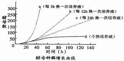 据图,a呈现 型增长,d呈现 型增长,d与a增长曲线不同是由与d所代表的酵母菌的增长受到了 制约。