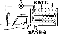 18.(2006上海生物28)假药亮菌甲素注射液,其溶剂二甘醇进入人体后导致急性肾衰竭,临床上用血液透析治疗。血透机工作原理如图,所用的透析管膜应具有的特点是
