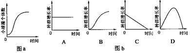 45.在一个玻璃容器内,装入一定量的符合小球藻生活的营养液,接种少量的小球藻,每隔一段时间测定小球藻的个体数量,绘制成曲线如图a所示。图b中能正确表示小球藻种群数量增长率随时间变化趋势的曲线是 ( )