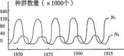 寒带针叶林中两个动物种数(N1、N2)的数量变化如下图所示,据图判断这两个种群的关系是( )。