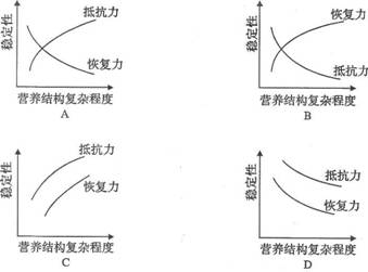 12.下图所示的是生态系统的稳定性与营养结构复杂程度的关系曲线,其中正确的是( )。
