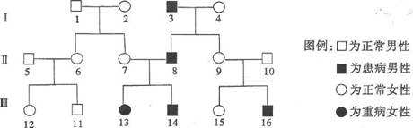 16.人的红绿色盲由X染色体上的一对等位基因控制的遗传病。下图是某家族红绿色盲病遗传系谱图: