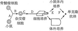 (1)图中A过程是从小鼠的脾脏中取得 细胞,该细胞能够产生 。从小鼠体内提取分离该细胞之前,应给小鼠注射 类物质。