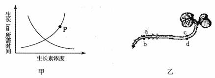 12.将植物横放,测量根和茎生长素浓度与其生长状况的关系如甲图所示,则曲线上P点最可能对应于乙图中的位置是 ( )