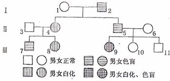 下图为白化病(A-a)和色盲(B-b)两种遗传病的家族系谱图。请回答: