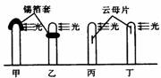 下图所示对燕麦胚芽鞘进行的向光性实验,(图中锡箔套不透光,云母片具有不透水性)