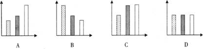 43.下图表示的是四种不同种群中不同年龄的个体所占的比例,其中种群密度可能越来越小的是( )( 表示幼年个体, 表示成年个体, 表示老年个体 )