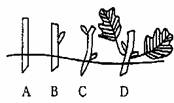 图示扦插的四种葡萄枝条,其中最易成活的是 ( )