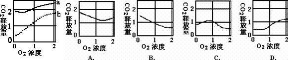 2.右图中曲线a表示水稻根有氧呼吸和无氧呼吸所释放的CO2总量的变化,曲线b表示有氧呼吸释放的CO2量的变化,则表示无氧呼吸释放的CO2量的变化是下图中的