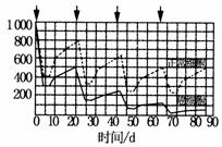 (11分)化疗是控制癌细胞生长的方法之一,某此药物可以杀死癌细胞,右图给出的是一个典型的化疗过程,每3周给药1次( 图中箭头所示),图中记录了化疗过程中正常细胞和癌细胞的数量变化。