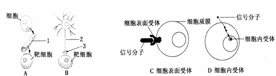 (3)根据C、D可知靶细胞上接受信号分子的受体有两种,一类是细胞表面受体,一类是细胞内受体。信号分子与受体结合的部分与细胞膜的特性以信号分子的化学性质有关。下列物质属于信号分子并且是通过细胞内的某些物质选择性的识别和结合而实现的是