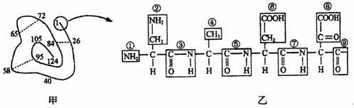 B.图乙所示结构中含有的R基是①②④⑥⑧
